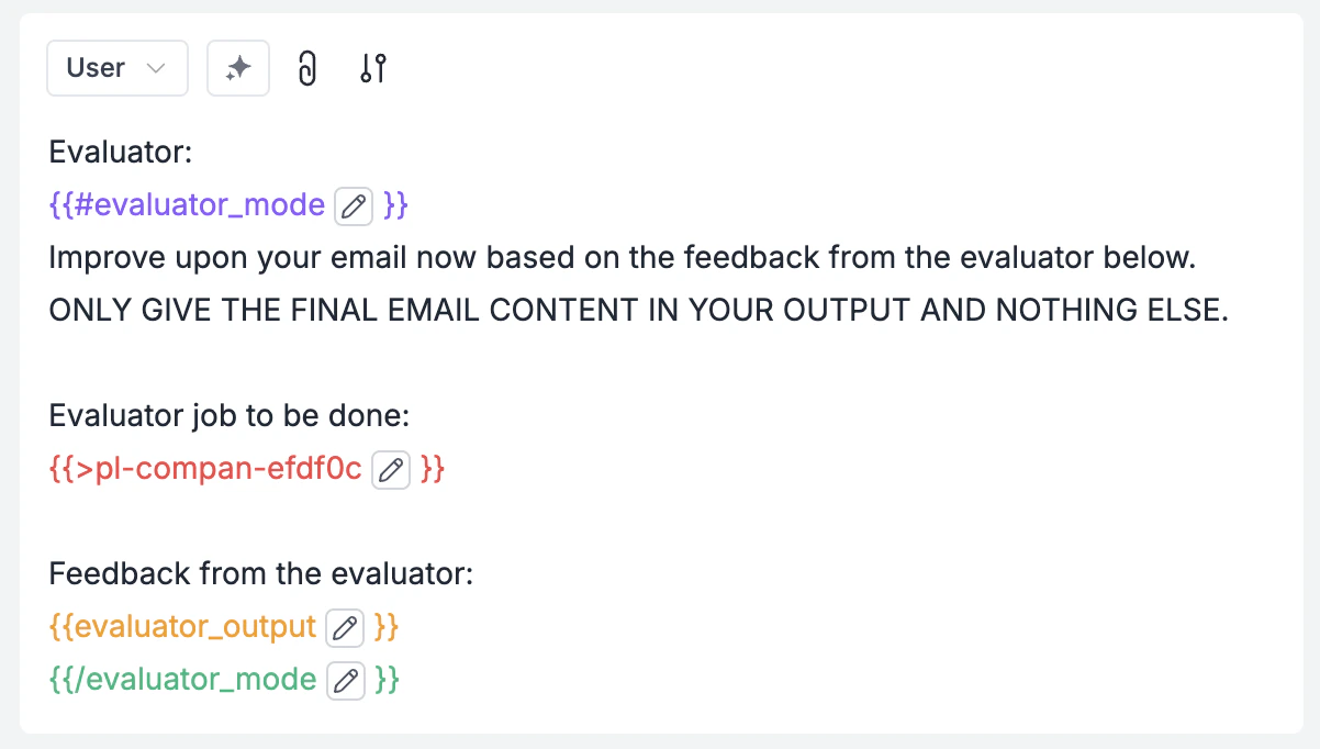 We’ll take this email and send it to the evaluator, which will send back a JSON with two keys: “score” and “comment”.C. Email Refinement Mode (add this final section):With the Evaluator’s output, we’ll now create the final email.