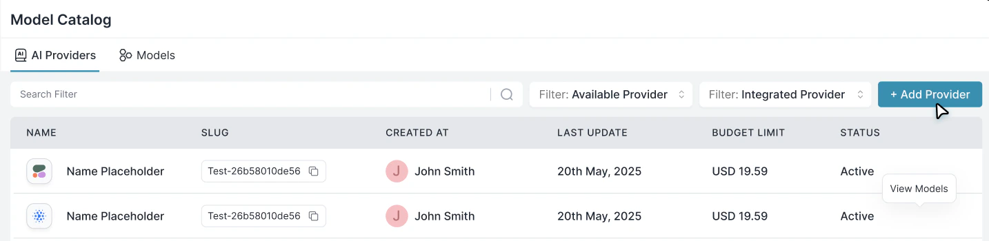 Go to Model Catalog → Add Provider.