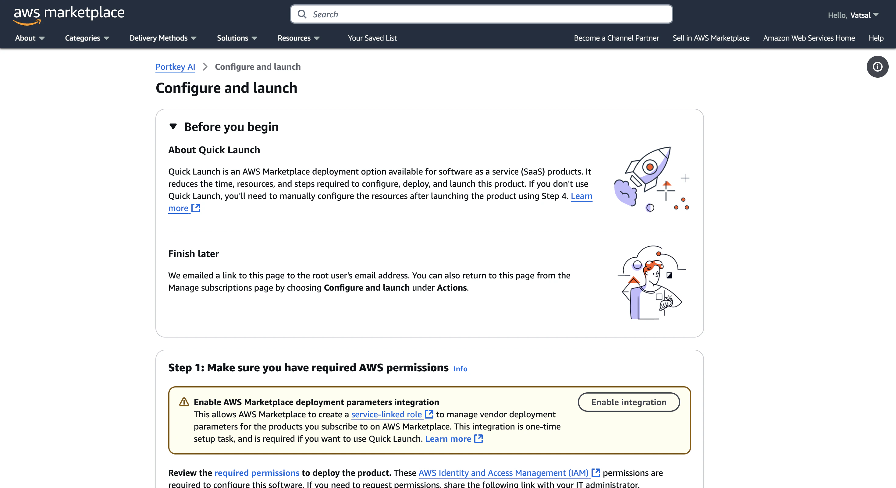 Upon subscribing to the Portkey AI Enterprise Edition, you will be able to select Quick Launch from within your AWS Console Subscriptions.
